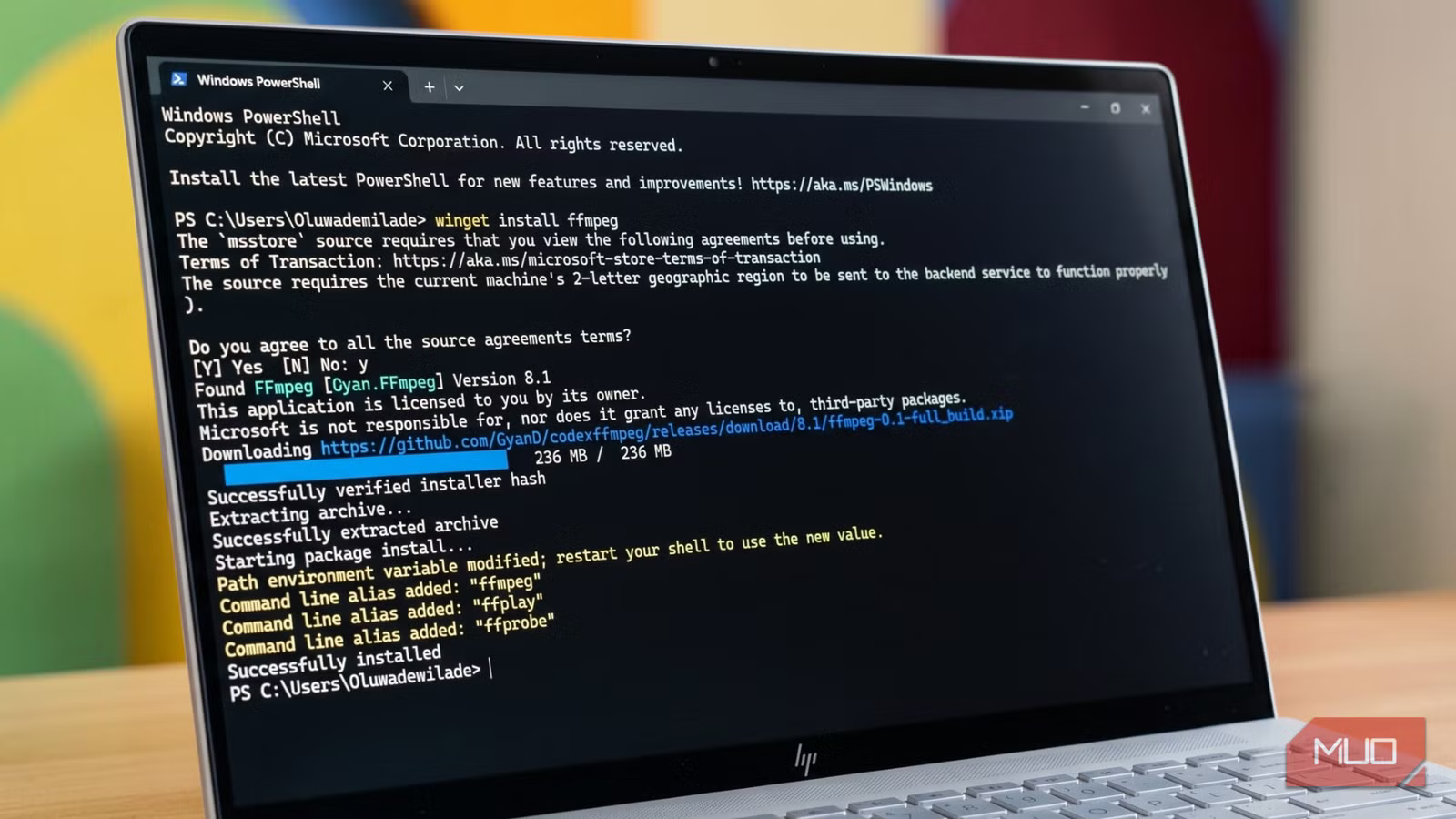 Earlier than you run that command, be sure to are in the proper folder. Since my terminal on Home windows says PS C:UsersOluwademilade>, my video file must be sitting straight in my Person folder. The video I used for example within the screenshot above is on my Desktop, so I ran this command first to maneuver to that folder: cd Desktop